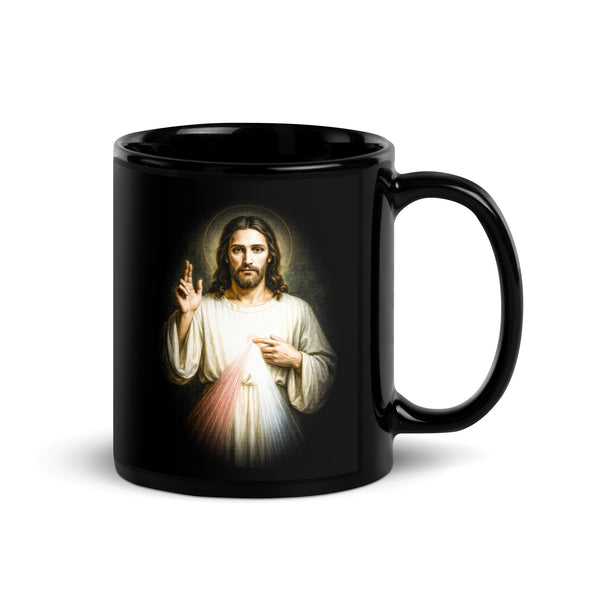 Divine Mercy (Jesus) Black Glossy Mug