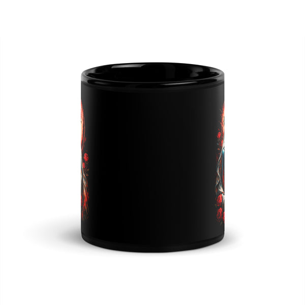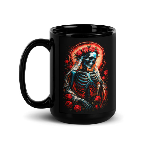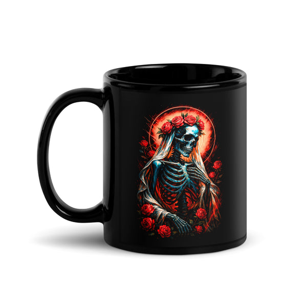 Floral Skeleton Black Glossy Mug