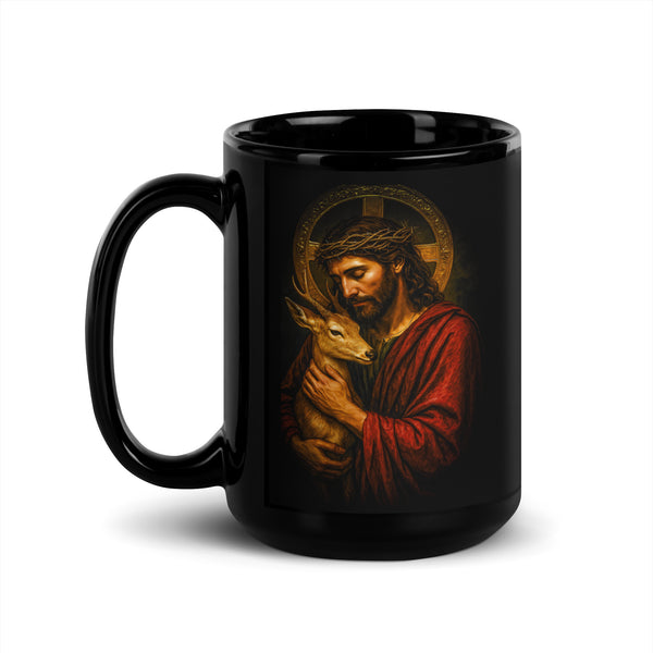 Jesus Embracing Black Glossy Mug