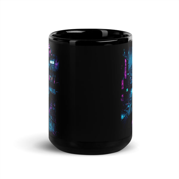 Kitty in the City (Cyberpunk) Black Glossy Mug
