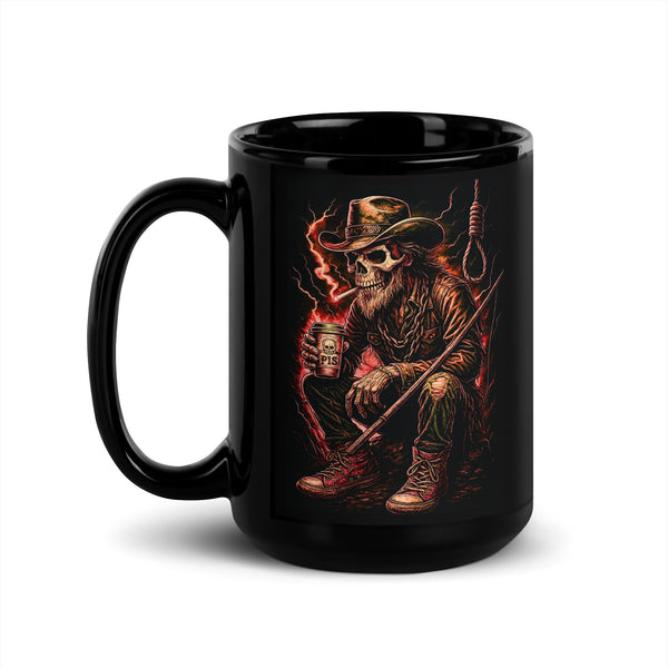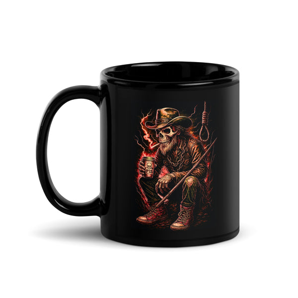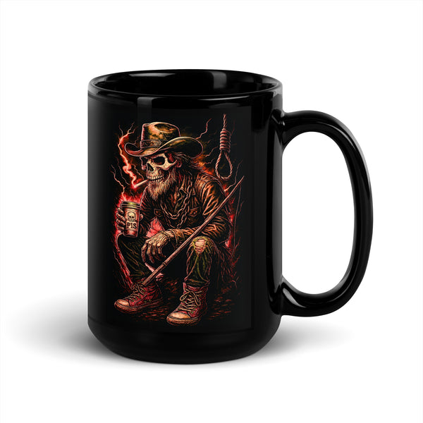 Skeleton Cowboy Black Glossy Mug