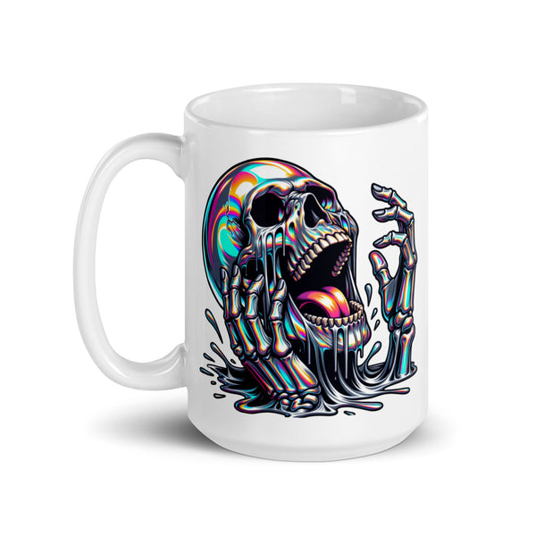Skeleton Scream White glossy mug