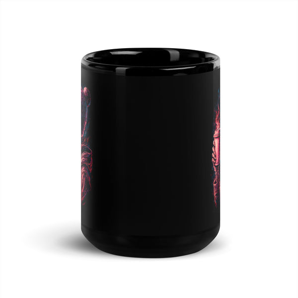 Skeleton with Coffee Black Glossy Mug