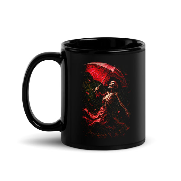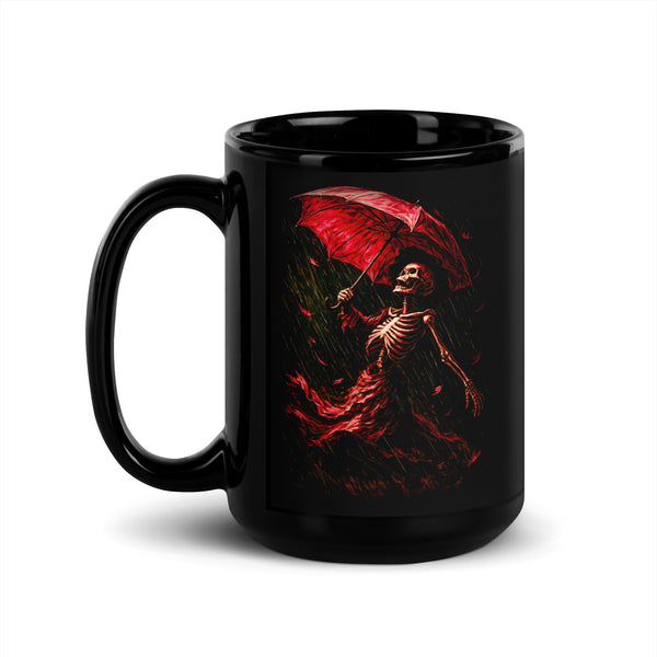 Skeleton with Umbrella Black Glossy Mug
