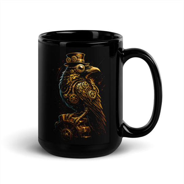 Steampunk Crow Black Glossy Mug