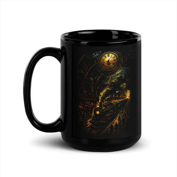 Train Station (Steampunk) Black Glossy Mug